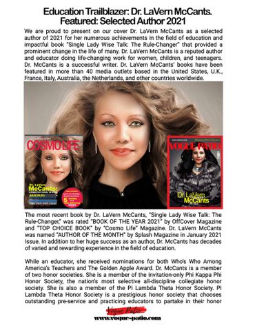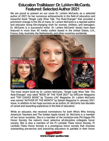 The multi-award-winning author, Dr. LaVern McCants is recognized globally for her fine works. "Dr. LaVern McCants books send readers in a positive direction. Dr. McCants books are rule-changers. She is one of the limited number of writers who are injecting the positivity and light among young readers and help them avoid any critical situation." -Heyyo Magazine